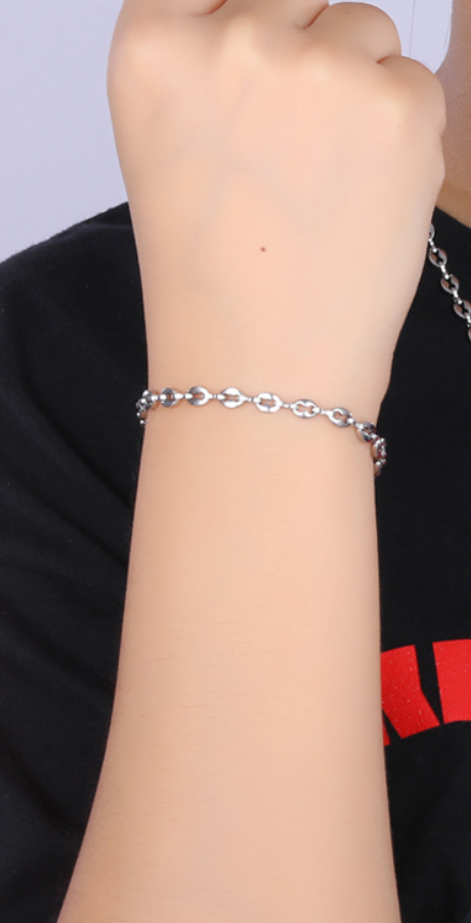 Βραχιόλι από ανοξείδωτο ατσάλι πάχος 0.45cm και μήκος αλυσίδας 21cm σε ασημί χρώμα.